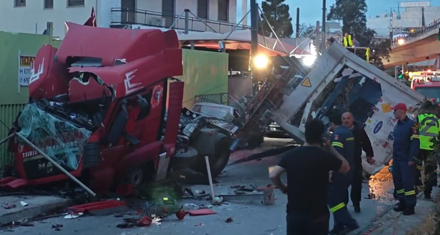 Απίστευτη εικόνα με την πτώση του φορτηγού από γέφυρα στη Θηβών