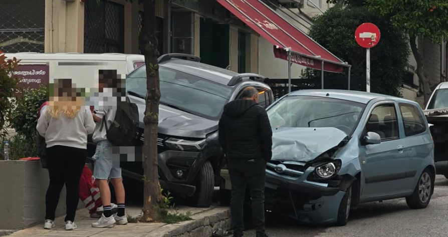 Τροχαίο έξω από παιδικό σταθμό στην Αγία Βαρβάρα – Δυο αυτοκίνητα καβάλησαν το πεζοδρόμιο